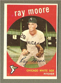 This card is one of 572 cards issued in the 1959 Topps card set--a set marking the largest set issued to that time. The cards in this set measured 2-1/2" by 3-1/2" and they have a round photograph at the center of the front with a solid-color background and white border. A facsimile autograph is found across the photo. Card numbers below #507 have red and green printing with the card numbering white in a green box. On card numbers 507 and higher, the printing is black and red and the card number is in a black box. Specialty cards include multiple-player cards, team cards with checklists, "All-Star" cards, highlights from previous season, and 31 "Rookie Stars". There is also a card of the commissioner, Ford Frick, and also one of Roy Campanella in a wheelchair. A handful of cards can be found with and without lines added to the biographies on the back indicating trades or demotions; those without the added lines added to the rare and valuable and are not included in the complete set price. Card numbers 199 through 286 can be found with either white or grey stock being the less common.