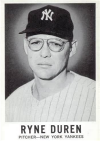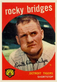 This card is one of 572 cards issued in the 1959 Topps card set--a set marking the larges tset issued to that time. The cards in this set measured 2-1/2" by 3-1/2" and they have a round photograph at the center of the front with a solid-color background and white border. A facsimile autograph is found across the photo. Card numbers below #507 have red and green printing with the card numbering white in a green box. On card numbers 507 and higher, the printing is black and red and the card number is in a black box. Specialty cards include multiple-player cards, team cards with checklists, "All-Star" cards, highlights from previous season, and 31 "Rookie Stars". There is also a card of the commissioner, Ford Frick, and also one of Roy Campanella in a wheelchair. A handful of cards can be found with and without lines added to the biographies on the back indicating trades or demotions; those without the added lines added to the rare and valuable and are not included in the complete set price. Card numbers 199 through 286 can be found with either white or grey stock being the less common.