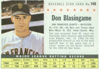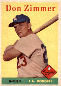 This card is one of the 494-card set released in 1958--as Topps continued to expand its set in size. One card (# 145) was not issued after Ed Bouchee Was suspended from baseball. Cards retained the 2-1/2" by 3-1/2" size. There are a number of variations, including yellow or white lettering on 33 cards between numbers 2-108 (higher priced yellow letter variations that are checklisted, are not part of the complete set prices). The number of multiple-player cards was increased. A major innovation is the addition of 20 "All-Star" cards. For the first time, checklists were incorporated into the numbered series, as the backs of team cards.