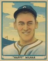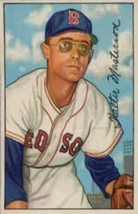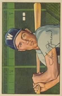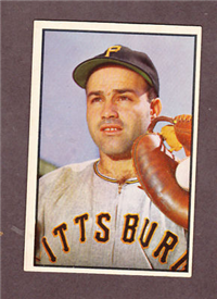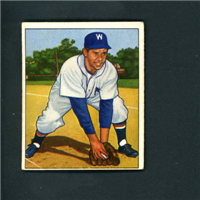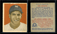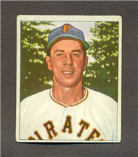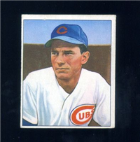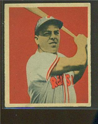 Bowman Gum Co.'s premiere set was produced in 1948, making it one of the first major issues of the post war period. Forty-eight black and white cards comprise the set, with each card measuring 2-1/6" by 2-1/2" in size. The card backs, printed in black ink on grey stock, include the card number and the player's name, team, position, and a short biography. Twelve cards (#'s 7, 8, 13, 16, 20, 22, 24, 26, 29, 30 and 34) were printed in short supply when they were removed from the 36-card printing sheet to make room for the set's high numbers (#'s 37-48). These 24 cards command a higher price than the remaining cards in the set.