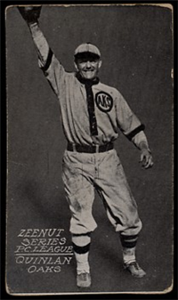 Little is known about the origin of this 50-card set issued in 1914 and designated as E224 in the American Card Catalog. Measuring 2 3/8" by 3 1/2", the front of the cards feature sepia-toned photos with the player's name in capital letters and his team below in parentheses. The back carries a biography and nmost cards, though not all, include year-by-year statistics at the bottom. The words "Texas Tommy" appear at the top, apparently referring to the sponsor of the set, although it is still unclear who or what "Texas Tommy" was, and despite its name, most examples of this set have been found in northern California. There is also a second variety of the set, smaller in size (1 7/8" by 3") which are borderless pictures with a glossy finish.