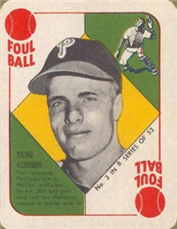 The first ever set of Topps Baseball Cards appeared as a subset of 19 cards from an issue of 252 "Magic Photo" cards. The set takes its name from the self-developing nature of the cards. The cards were blank on the front when first taken out from the wrapper. By spitting on the wrapper and holding it to the card while exposing it to light, the black and white photo would appear. Measuring 7/8" by 1 1/2", the cards are very similar to Topps 1956 "Hocus Focus" cards.