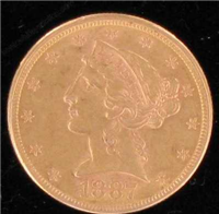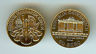 22 millimeter diameter gold coin with reeded edge, and comprised of 7.98 grams of 917 fine gold.