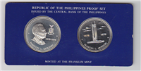 Coin of the realm proof set accompanied by certificate of authenticity, legal tender in the Republic of Panama and minted by The Franklin Mint under authorization of the Panamanian government. The 5 and 1 Balboas coins are .500 fine silver. Includes 8 coins including the large 20 Balboa coin. The eight-coin Proof Set includes all denominations of the nation's coinage from one centesimo to five Balboas. The obverse designs honor men revered in Panama as national heroes. The reverse of each of the coins bears the official coat of arms of Panama.