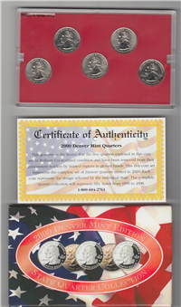 Includes 5 coins, US Mint box and certificate of authenticity. The five quarters in this set are: New York, North Carolina, Rhode Island, Vermont and Kentucky.