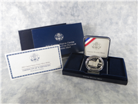 San Francisco Mint. 1992 Olympic 90% Silver Dollar Proof. Coin is preserved in a hard plastic shell and displayed in a velvet-lined case, which is housed in an original U.S. Mint box with outer sleeve and including certificates of authenticity.