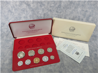 The $5 and $2 coins are sterling silver; the $1 and 50 cent coins are of .800 silver. Includes 9 coin set sealed in blue card and housed in blue plastic presentation wallet and with information card.