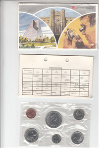 Complete set of 6 proof-like coins (no medallion) issued for the Centennial celebration by the Royal Canadian Mint and housed in a black leather display case, stored in a white paperboard box embossed with the seal of Canada. All six Canadian coins in this Proof-like coin set, ranging from the cent to the Silver dollar, exhibit the animal reverse designs of the Canadian Centennial issues. These coins have some of the most beloved designs in Canadian coin history, including: