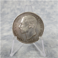 .900 silver, 37mm Alfonso XII (3rd Portrait) coin.