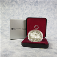36 mm, 23.33 gram, .500 silver coin minted by the Royal Canadian Mint to commemorate the 100th Anniversary of the Trans-Canada Railway. Housed in Mint issued hard plastic coin holder, inside black display box with sleeve.
