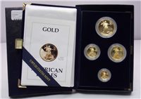 Set includes the one ounce ($50) American Eagle, West Point Mint, half ounce ($25) American Eagle, Philadelphia Mint, the quarter ounce ($10) American Eagle, Philadelphia Mint and the tenth ounce ($5) American Eagle, Philadelphia Mint.
