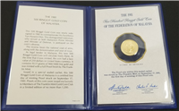 $150 gold proof coin, the first $150 coin ever issued by Barbados, sealed within original cachet and housed in blue plastic wallet display, certified First Day of Minting Proof. 26 mm diameter. The coin is 7.13 grams of .500 fine gold and was minted with a full Proof finish. Issued in a strictly limited edition by The Franklin Mint under authority of the Government of the Barbados.