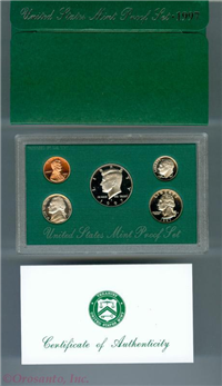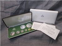 The $5 coin is sterling silver. Includes 7 Proof coins sealed in plastic on card and housed in red display wallet, with information card.