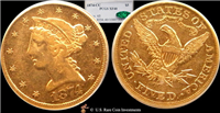 West Point Mint. Includes gold $5 proof, 8.359 grams 90% fine gold, mintage 100,000, in original US Mint box, slipcase, velvet-lined coin holder, and certificate of authenticity.