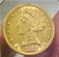 The five dollar coin is silver.