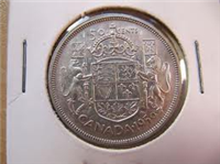 36mm diameter. ~23 grams .800 silver. Obverse: Young bust right; Reverse: Voyageur, date and denomination below; Obverse Design: Arnold Machin; Reverse Design: Emanual Hahn