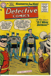 November, 1955 Lead story: "If I Were Batman!", 1st & Origin (pt.1): John Jones, Manhunter From Mars in backup story: "The Strange Experiment of Dr. Erdel!"