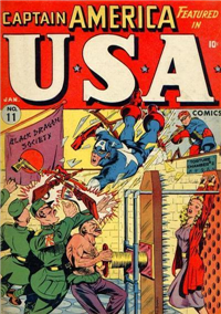 November, 1941. Joe Simon, Jack Kirby. Captain America stories: Strange Mystery of the Nile, Murder Stalks the Maneuvers and Case of the Black Witch; other stories include Father Time; Hurricane, Master of Speed; Headline Hunter; and an ad for Sentinels of Liberty club.