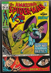 August, 1962. Art: Steve Ditko. Cover: Kirby/Ditko. 1st & Origin: Spider-Man. 1st: Aunt May. 1st & Death: Uncle Ben. Lead story: "Spider-Man!", story continued in Amazing Spider-Man #1.