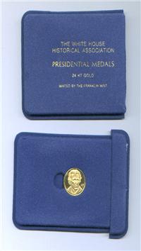 Housed in a dark blue display wallet, this limited edition inaugural medal was released February 22, 1977. It is made of 10KT gold and weighs about 3.2 grams. It was issued to commemorate the inauguration of Jimmy Carter as President of the United States.