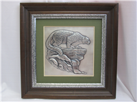 1978. Sterling silver wall sculpture, 7" x 7" mounted on 11 1/4" Philippine Mahogany base. Commissioned in a limited edition of 100 by The Franklin Mint to commemorate the 50th Anniversary of the Serengeti Game Preserve. Certified October 2, 1978.