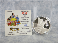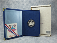 Rarities Mint. Strictly Limited Edition of 20,000 medals. 1 troy ounce .999 Fine Silver proof Bashful medal commemorating the 50th Anniversary of Walt Disney's Snow White and the Seven Dwarfs, released in 1937. 1-1/2 inch medal is encased in a hard plastic coin holder, housed inside a velvet display box with a serially numbered Certificate of Authenticity certified 6/1/87.