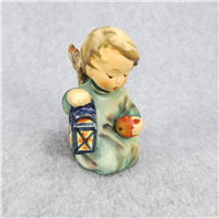 3 1/2 inches tall. Base is incised 338 and 1956.. Goebel TMK 6 trademark imprinted in blue on bottom of base. Artist hand initialed and dated in black ink. 2 1/2" red candle included.