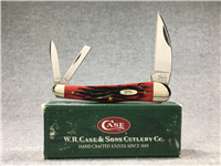 2-3/4 inches closed. 4-7/8 inches open. Made in USA. " x x x Case XX *x*x* " (with lightning bolt S) and "USA 6220 CV" tang stamps. Oval long-C "Case xx" shield. Chrome vanadium blades. Red jigged bone handle. Nickel Silver bolsters. Brass liner.