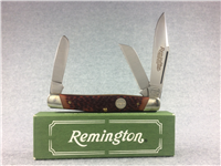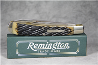 2-Blade. 3-5/8 inches closed. 6-1/4 inches open. Made in USA. 'Remington UMC Made in USA' and 'R103-B' and '2004' tang stamp. Bullet shield. Stainless Steel blades. Jigged Bone handle. Brass liner. With original box and paperwork.