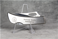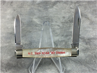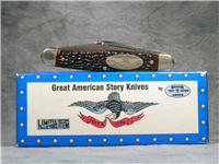 Limited Edition of 42. 4-1/8 inches closed. 7-3/8 inches open. Made in USA. "CASE XX **SS** USA" (4 dot with lightning bolt S) and "B254 SS" tang stamps. Double oval 'Open C' CASE shield. Stainless steel blades. Master blade etched in 3 colors "2ND ISSUE GULF COAST KNIFE CLUB 1987 1 OF 42" with water and anchors image. Smooth black / grey bone handles. Nickel silver bolsters. Front right bolster etched with serial. Brass liner.