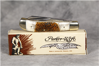 3-3/8 inches closed. 5-7/8 inches open. Made in USA. 'Parker Cut. Co.', Eagle Logo, and 'Surgical Steel - Japan' tang stamps. Surgical Steel blades. Stag handle. Nickel Silver bolsters. Brass liner. With box.