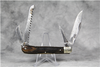 4-Blade Jumbo Congress knife. 4-1/8 inches closed. 6-5/8 inches open. Made in Germany. "BOKER SOLINGEN GERMANY" and tree logo tang stamp. Round "SOLINGEN" shield and round "1973 WISS" shield. Stainless steel blades. Master blade etched "TREE BRAND" and "5474 LTD". Jigged handle. Nickel Silver bolsters. Brass liner. With box and paperwork.