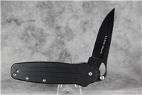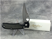 4-5/8 inches closed. 8-1/8 inches open. Made in USA. "SB 4 (sideways T)" tang stamp. Black oxide stainless steel blade etched "STRIDER BUCK" with logo. Black Taccom handle. Stainless steel liners.