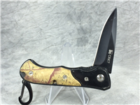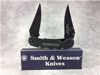 Artwork was created by world renown wildlife artist, Pam Essex. Includes 4 single-blade lockback pocket knives with scrimshaw inlay handles on both sides. "HAMMER FORGED SURGICAL CHINA" tang stamps. Surgical steel blades etched "Smith & Wesson". With original box and certificate of authenticity.