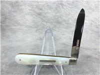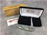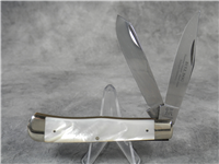Limited Edition. 3-5/8 inches closed. 6-1/4 inches open. Made in USA. "CASE XX *USA* 81749L SS" (2 dot with lightning bolt S) tang stamp. Stainless Steel blade. Gold Mother of Pearl handle. Nickel Silver bolsters. Front right bolster etched with serial. Brass liner.