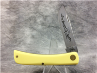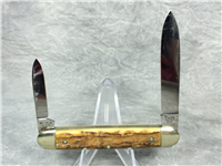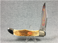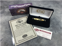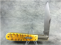 3-1/2 inches closed. 5-3/4 inches open. Limited Edition. Made in USA. "CASE XX ***SS** USA" (5 dot with lightning bolt S) and "W64052 SS" tang stamps. Double Oval 'Open C' CASE shield. Stainless steel blades; master blade etched "Case XX 1985 Tobacco Commemorative" and secondary blade etched "Kentucky BURLEY". Yellow Jigged Bone handle. Nickel Silver bolsters; front right bolster etched with serial. Brass liner.