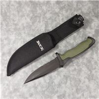 9.1 ounces. 10-3/8 inches overall. 5-1/8 inch blade. 1/4 inch thick. Made in USA. Front tang: BUCK 655 (1997 symbol) USA. Black Oxide Coated Stainless Steel Blade. Black Molded Nylon handle.