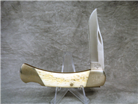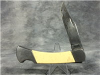 Limited Edition #1577. 4-1/8 inches closed. 7-3/8 inches open. Made in Germany. "BOKER SOLINGEN GERMANY" with tree logo and tree logo over "SOLINGEN" tang stamps. Rectangular "HILLBILLY" shield. Main blade etched "1978 LTD" and with a scene depicting a "Hillbilly" leaning against a tree near a house. Smooth Bone handle. Nickel Silver bolsters. Front right bolster etched with serial #1577. Brass liner.