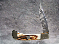 Limited Edition. 5-3/8 inches closed. 9-1/2 inches open. Made in USA. "CASE XX ***SS** USA" (5 dot with lightning bolt S) and "C51050 SS" tang stamps. Gold Oval Long C "CASE XX" shield. Stainless Steel blade etched "CASE COLLECTORS CLUB 1985" in script with nice scrollwork. Beautiful stag handle. Nickel Silver bolsters; front right bolster etched with serial. Brass liner.