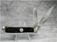 Limited Edition. 3 inches closed. 5-1/4 inches open. Made in USA. " x*x*x CASE XX *x*x* " (with lightning bolt S) and "USA 620096 SS" tang stamps. Bowtie closed-C "CASE" shield. Stainless steel blades. Master blade etched with long-C serialization. Bring Green Jigged Bone handle. Nickel Silver bolsters. Brass liner.