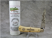 2-Blade Tiny Muskrat Knife. Limited Edition Annual Club Knife for Junior Members. 2-3/4 inches closed. 4-5/8 inches open. Made in USA. "CASE XX x x " (with lightning bolt S) and "TINY MUSKRAT USA SS" tang stamps. Oval "CASE COLLECTORS CLUB" shield. Stainless steel blades etched "Junior Member" and "2008". Burnt oatmeal Jigged Bone handle. Nickel Silver bolsters. Front right bolster etched with long-C and serial #L9221. Brass liner. With original clam shell case, paperwork, and certificate of authenticity.