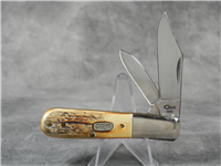 1995 NKCA Limited Edition of 1850. 5-1/4 inches closed. 9-1/2 inches open. Made in USA. "Case XX USA ***** " (Long C script; 5 dot with lightning bolt S) and "5251 SS" tang stamps. Double oval open C "CASE" shield and Round NKCA shield. Stainless Steel blades. Master blade etched "National Knife Collectors Association 1995 Club Knife". Genuine stag handle. Nickel Silver bolsters. Front right bolster etched with serial . Brass liner.