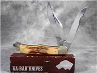 4-1/4 inches closed. 7-1/2 inches open. Made in USA. " x*x*x Kinfolks USA *x*x* " and "USA 6375 SS" tang stamps. "Kinfolks" bomb shield. Stainless Steel blades. Honey brown jigged bone handle. Nickel Silver bolsters. Brass liner.