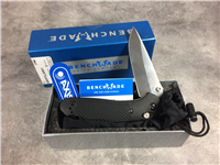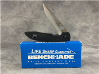 Discontinued. Factory etch: 'Benchmade USA' on front with trademark and 'Crawford Design' on back. 4-3/4 inches closed. 8-1/2 inches open. Made in USA. ATS-34 Combination Drop Point blade. Blue Benchmade box