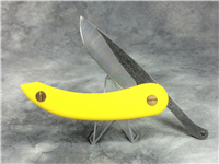 2-7/8 inches closed. 5 inches open. Made in USA. "CASE XX x x " (with lightning bolt S) and "USA 3182 SS" tang stamps. Bar "CASE XX" shield. Stainless steel blade. Yellow composite handle. Nickel Silver bolster. Brass liner.