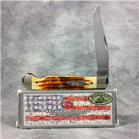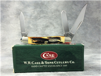 3-5/8 inches closed. 6-1/4 inches open. Made in USA. Front Tang Master Blade: x x x CASE XX x*x* (5Xs, 2Dots, Longtail-C, Lightning Bolt S) ; Front Tang Blade 2: USA 62131 CV. Oval CASE XX Script shield. Chrome Vanadium blades. Master blade etch: illustration of a manned canoe. Amber Jig Bone handle. Nickel Silver bolsters. Brass liner.
