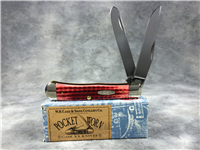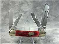 Limited Edition 1 of 1200. 3-7/8 inches closed. 6-3/4 inches open. Made in USA. "CASE XX ********* USA" (9 dot with lightning bolt S) and "R MUSKRAT" tang stamp. Double Oval 'Open C' CASE shield. Chrome Vanadium blades (pile side blade is serrated). Red Jigged Bone handle. Nickel Silver bolsters. Brass liner.