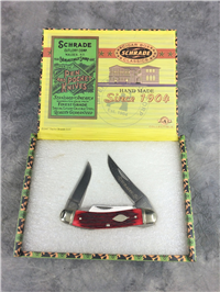 Single-Blade Sunfish Knife. Made in USA by Queen Cutlery. File & Wire #5 Tested Series 2. 3-5/8 inches closed. 6-1/8 inches open. "SCHATT & MORGAN CUTLERY CO. TITUSVILLE PA." and "F & W QC" tang stamps. Blade etched "FILE & WIRE TESTED ATS-34". Red worm groove bone handle. Nickel Silver bolsters engraved "SCHATT" on left side and "MORGAN" on right side. Brass liner. With original box.