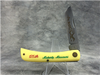 Limited Edition 1 of 700. 3-1/2 inches closed. 6-1/4 inches open. Queen logo and "1999" tang stamps. Round NKCA shield. Stainless Steel blades. Master blade etched "1999 NKCA YOUTH KNIFE 1 of 700". Green Jigged Bone handle. Nickel Silver bolsters. Brass liner.
