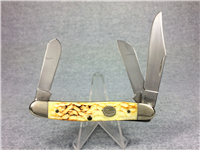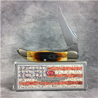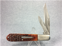 Limited Edition #109 of only 250. 3-5/8 inches closed. 6-1/8 inches open. Made in USA. " x*x CASE XX x*x*x " (with lightning bolt S) and "USA MUSKRAT SS" tang stamps. Script "Case" shield. TruSharp Surgical Steel blades etched "2002 INTERNATIONAL SWAPMEET" and "FRIENDS FOR A LIFETIME". Roger's Corn Cob Jigged Burnt Antique Bone handle. Nickel Silver bolsters. Front bolster etched with 'Long C' logo and "109". Brass liner. With original collector's tin, paperwork, and Certificate of Authenticity.